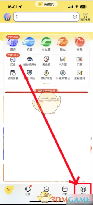 1. 打开飞猪旅行APP,接着点击右下角的“我的”。