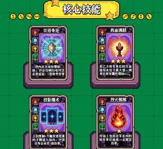 7、玩家可借助高血量单位,使反伤效果达到最大化。而且这张卡牌的星级越高,其反伤效果的持续时间就越长。