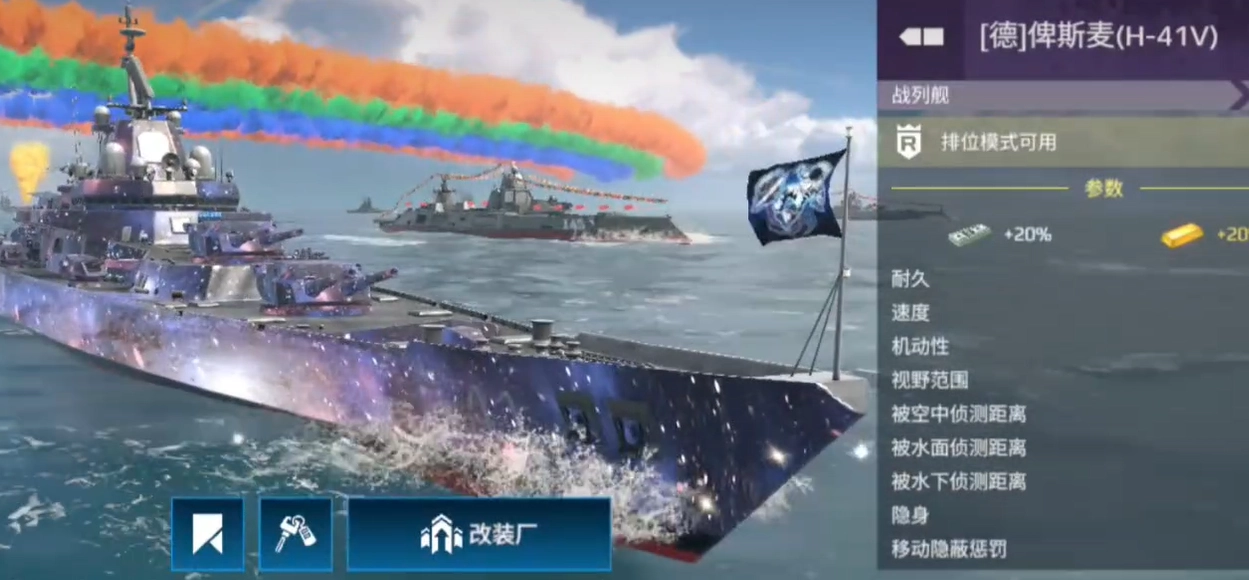 实际上,现代战舰主要聚焦于现代化海上战争,但战列舰所具备的那种大炮巨舰的震撼感依旧存在。对于零氪玩家而言,“彼得大帝”是推荐的首选战舰。尽管它属于金币舰,然而一般通过参与活动或者积累游戏时长就能免费解锁,堪称平民玩家的福音。“彼得大帝”配备了主炮、鱼雷以及导弹等多种武器,火力完全可以说是大口径的饱和式输出。虽说其机动性略显笨拙,不过凭借厚实的装甲以及多样化的武器组合,基本上能做到只要有敌人敢靠近,就将其送入海底。在中高端对局中,“彼得大帝”也占有一定的地位,称得上是零氪玩家的战列舰之光。