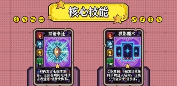 4、投影魔术:当双倍奉还处于生效状态时,运用投影魔术对友方角色进行复制。复制产生的单位所能承受的伤害为正常情况的3倍,而且该复制单位在受到伤害后,其反击伤害会显著提高。