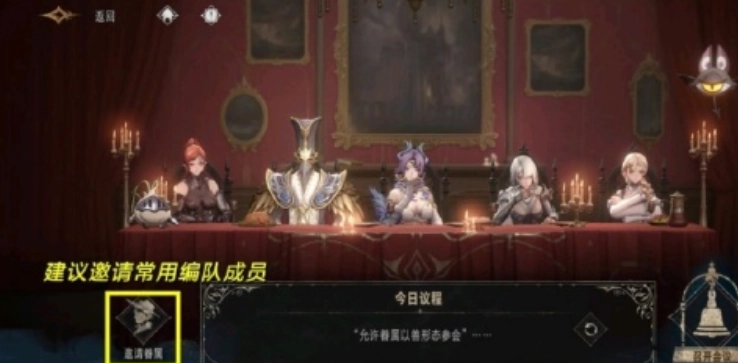 接下来便是议事阁,在议事阁中,你能够邀请形形色色的角色参与议事,促使他们表达自身观点,随后我们从中挑选执行方案。此活动每日仅能进行一次,参与后可提升角色好感度,尤其是与我们观点相符的角色,好感度提升幅度会更大。要知道,好感度会对角色的属性面板以及战力产生影响。在此建议各位邀请日常编队中的五位成员参与,如果队伍有所变动,也务必记得同步更改议事阁的邀请人员。