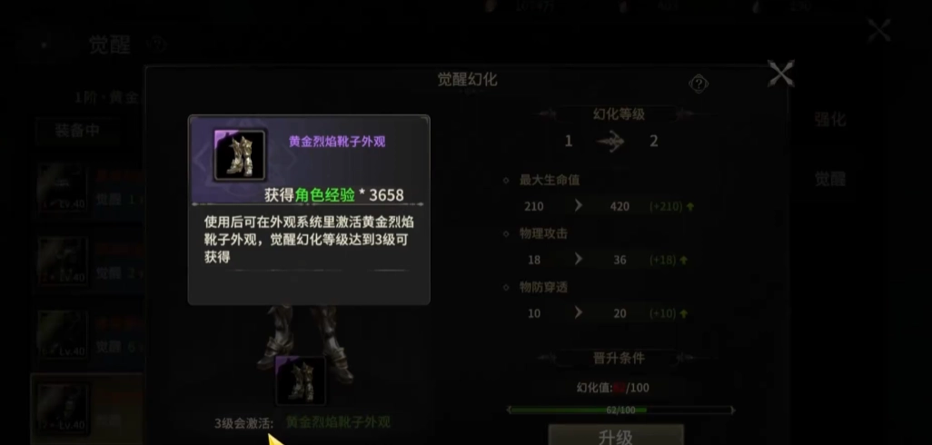 每次成功让黄金装备觉醒,都能产生一定的觉醒幻化值,这是获得幻化值最为直接的途径,在觉醒次数不断增加之下,幻化只也会逐步进行积累,觉醒是有一定概率的,并不是每次都能保证成功,可通过提高幸运值来提升觉醒成功率,且不同部位黄金装备觉醒产生的幻化值也是不同的,武器产生的幻化值就比较多。