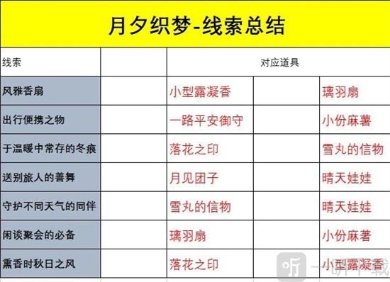 1、依据线索可知,答案为月见团子和晴天娃娃这两个道具。