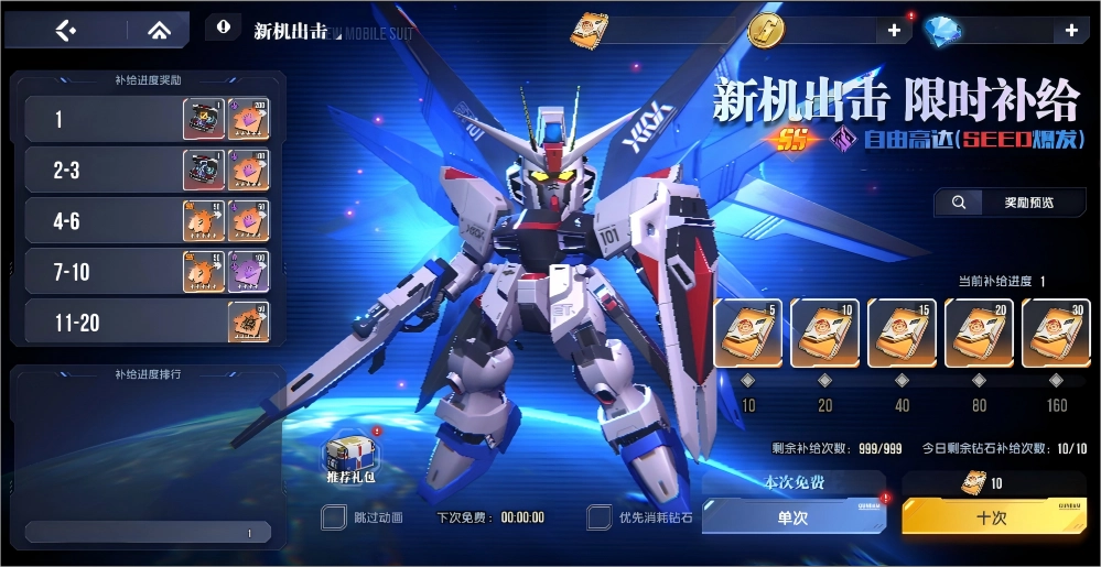 3月20日(服务器开启第八天),自由高达(SEED爆发)将在活动【新机出击】中亮相。各位玩家可在该活动里,通过完成【机体挑战】、【机体战令】等活动玩法,免费获得“活动机体补给许可”等众多道具,千万不要错过啦。