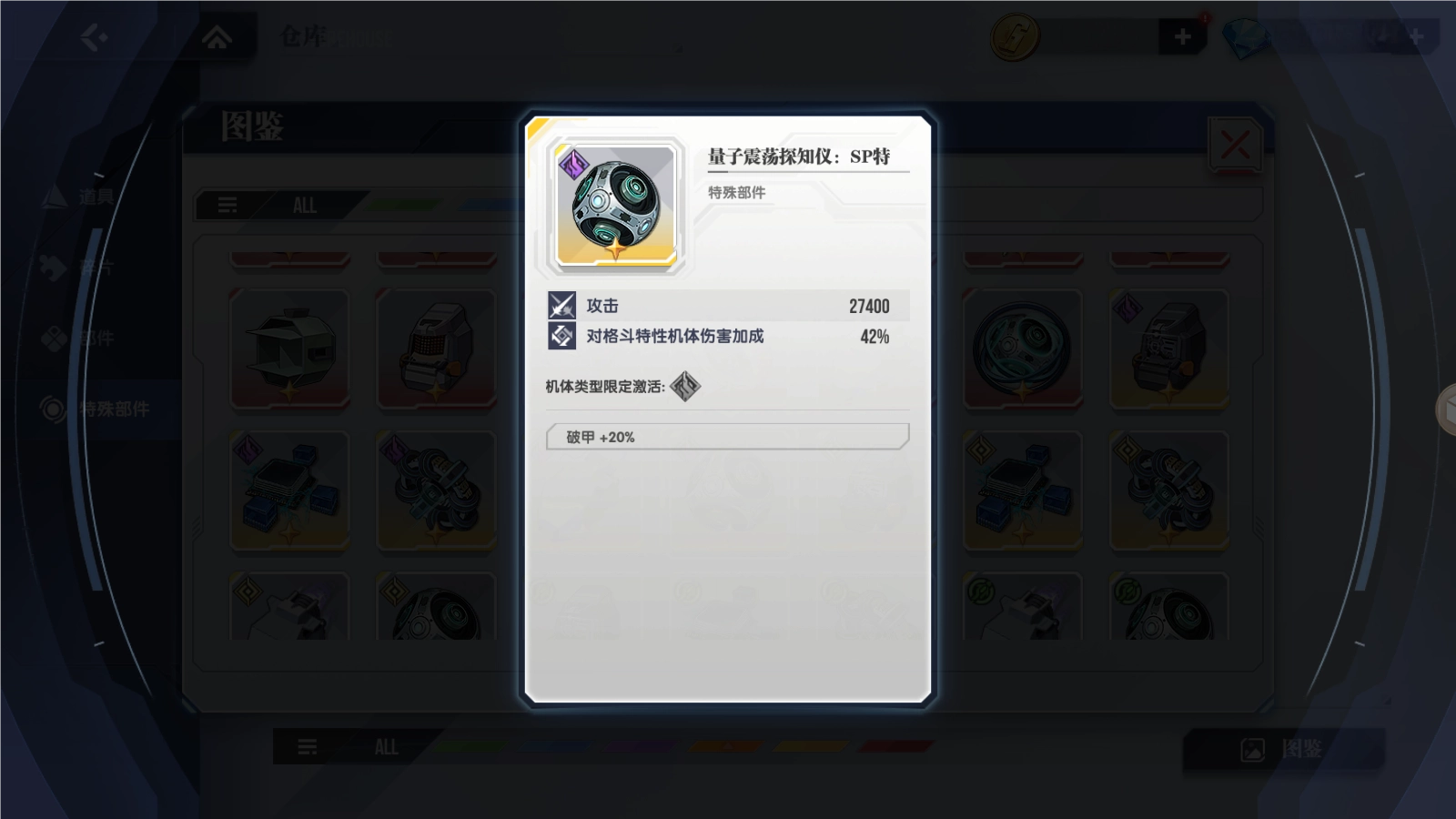 部件方面,由于必杀技【流星装备】固定锁定最近的敌人,可以考虑对格斗、辅助机体增伤的部件,属性选择攻击、暴击、破甲等。力求在尽快将对面的前排防线击穿,利用连发必杀技将敌人逐个击破。
