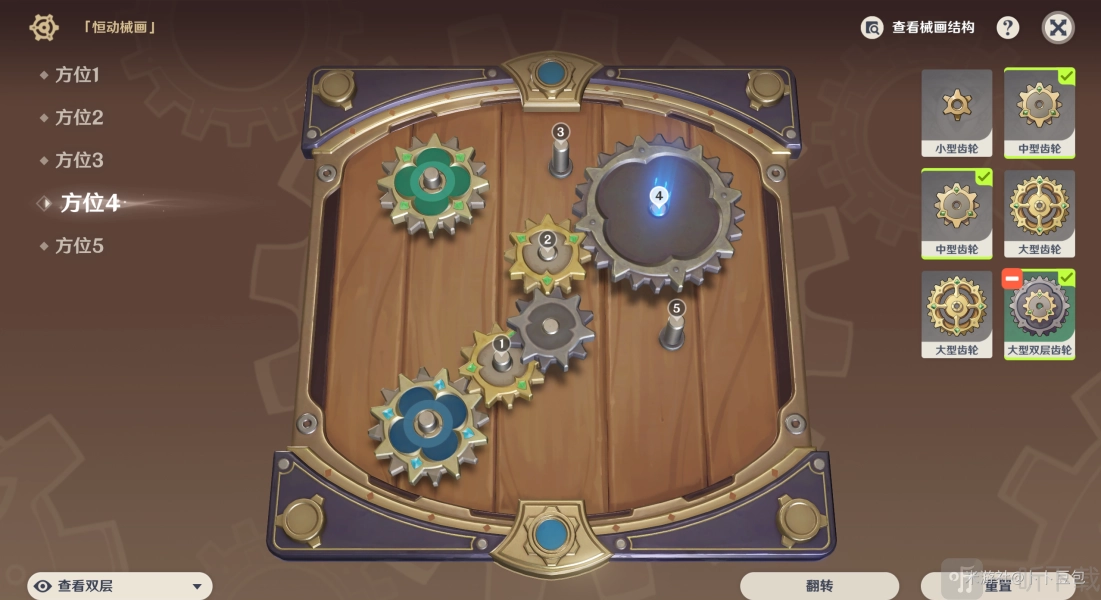 位置4 - 大型双层齿轮 - 进行翻转操作