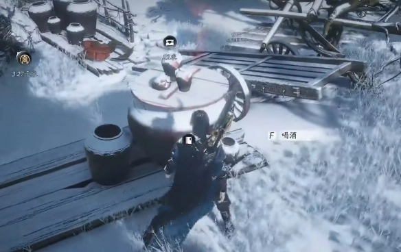 2、然后靠近酒罐子进行喝酒。