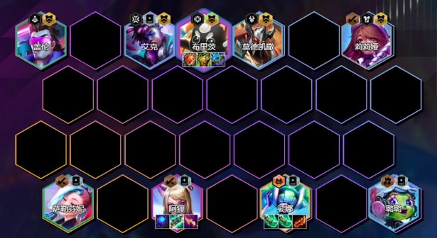 为避免吸引仇恨而贸然冲上前,其他护卫英雄安排在倒数第二排。考虑到防止阿卡丽直接切入后排,莎弥拉与薇古斯放置于最后一排的中间位置。