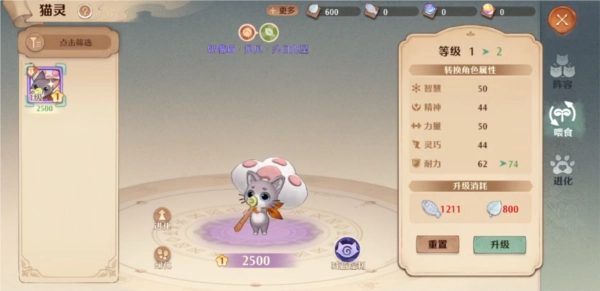 1提升战力主要有三种方法,分别为猫咪、卡牌以及装备。