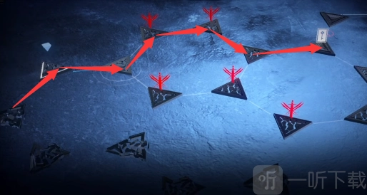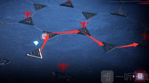 4、完成选择后,我们往左侧移动,尽可能避开红色的战斗点,具体路线如图所示。