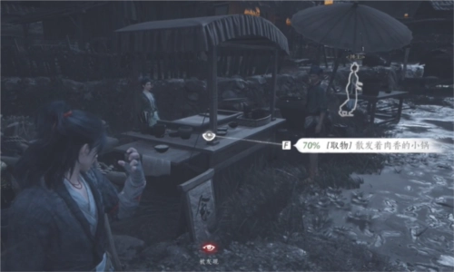 3、接着把散发着肉香的小锅拿给他,最后将说书人的箱子拿给他就行。