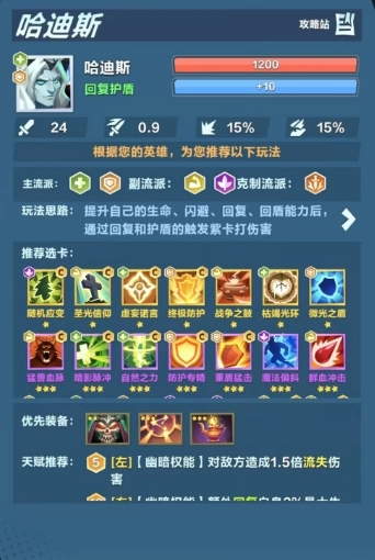 再讲讲哈迪斯的大招冥域镇魂,此技能一旦释放,就能立即获取50层护盾。2秒过后,不仅会依据这段时间护盾累计抵挡的伤害,造成50%的魔法伤害,还会恢复这段时间所获护盾50%的生命值。这个大招在关键时候,既能保障自身存活,又能打出相当不错的伤害。 在天赋选择方面,右左左的搭配堪称经典。当达到5级时,选择右边的天赋,在获得护盾时,会有30%的概率额外增加3点魔法值。这一天赋使得哈迪斯在获取护盾的同时,有机会增加魔法值,从而为后续技能的释放提供更充足的蓝量,保证技能能够顺畅施展。