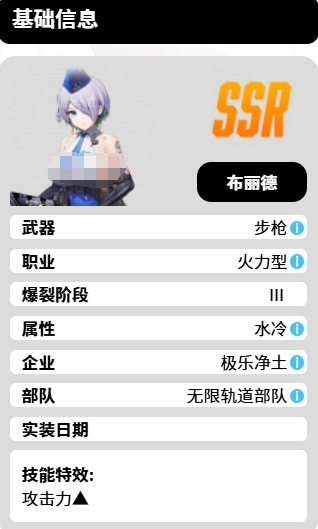 在游戏里,布丽德是一名具备水冷属性的火力型步枪手,因此有着专属的战斗风格。若问布丽德这个角色最大的亮点是什么,无疑是她超强的攻击力,很少有角色能达到她这般高的攻击力。她的战斗属性同样极为出众,不仅攻击范围极为广泛,暴击率与暴击伤害也都处于较高水准。如此一来,在战斗中,一旦布丽德触发暴击,就能对敌人造成超强打击。