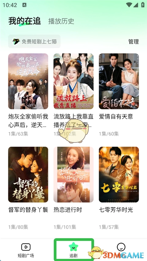 7、在追剧页面,能够看到正在追看的剧集以及播放历史记录。