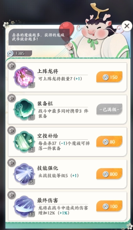 1、击杀魔族可以获得龙城币,可在军需官处使用龙城币进行能力升级