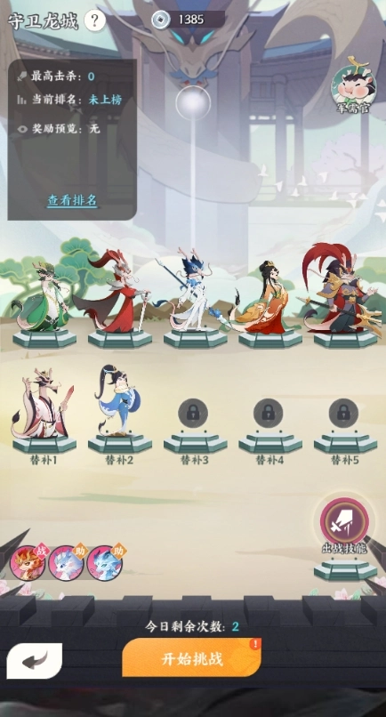 魔族正从邪魔之窟不断涌出,龙将们需在这场无休止的战斗中竭力存活,让我们携手守卫龙城。每场战斗能派出5名出战龙将,同时最多可安排5名替补龙将,替补席位要在军需官处逐个解锁。一旦战场中有龙将战败,替补龙将就按顺序依次登场。