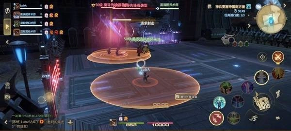 超荷技能:BOSS会移动至场地中央位置,对自身周边的圆形区域以及环形区域发动范围伤害(AOE),玩家需及时走位到安全区域进行躲避。