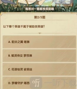 2、下列英雄中,哪一个不属于辅助类英雄?【娑丽丝】