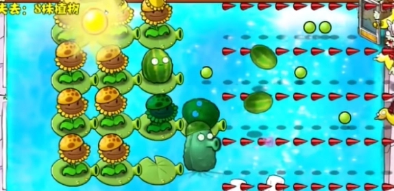7、最后在最左边添加一列寒冰仙人掌,在外围添加多个坚果就能顺利过关。