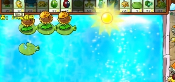 2、首先在同一条路径上种植三株睡莲以及三株阳光向日葵。