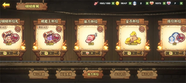 游戏的资源分为,体力,金币,接引之誓,金啵啵,钻波波。(钻啵啵是氪金资源)