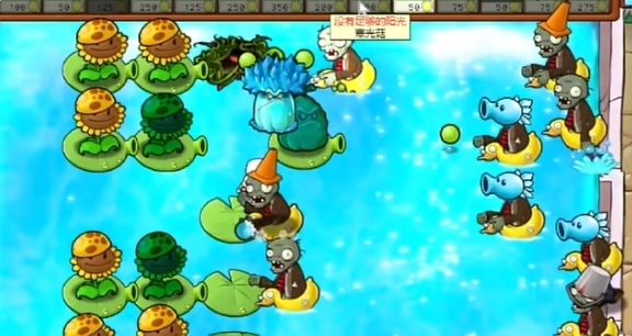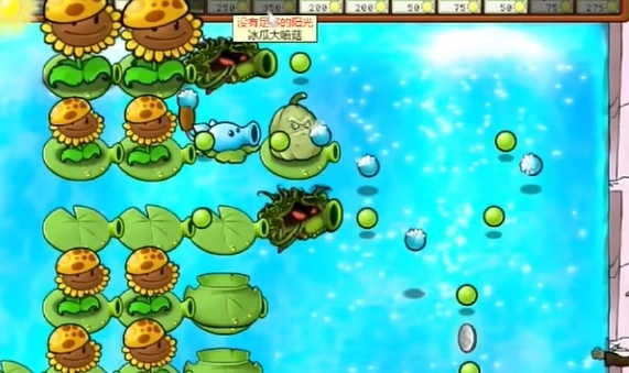 7、最后在向日葵的左右两边增添多个寒冰大喷菇,这样就能顺利过关。