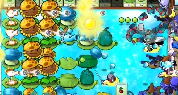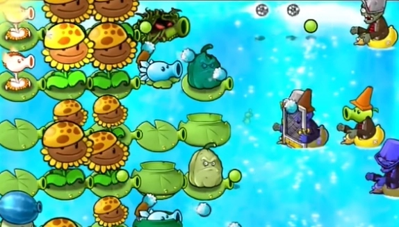 6、于外侧栽种多个窝瓜坚果,以此抵御植物僵尸的射击伤害。