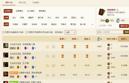 4、点开卡组,就能看到其他人使用的那些较为流行、胜率较高的优质卡组。