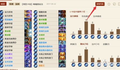 5、挑选一个你打算使用的卡组,点击卡组上方的复制按钮,就能将卡组代码复制下来。