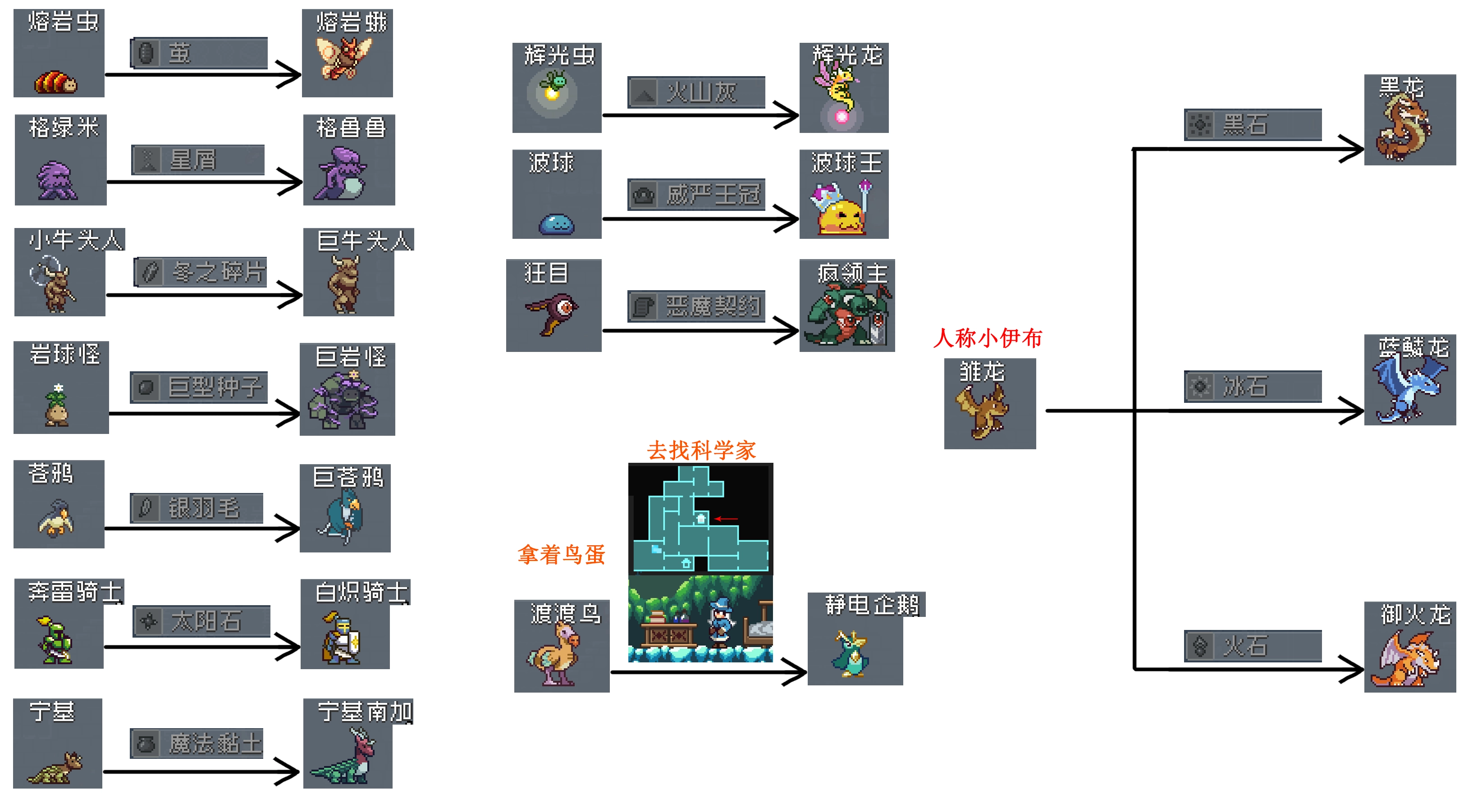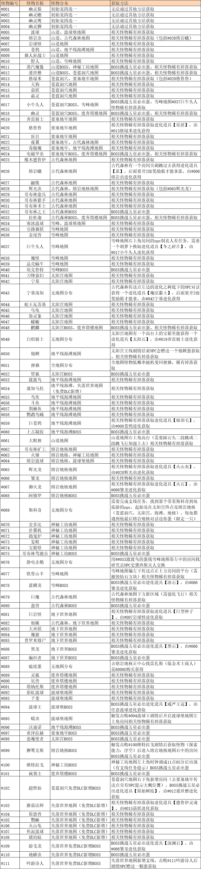 3. 对应的怪物进化图(新增dlc未涵盖)完整怪物图鉴及其获取方式