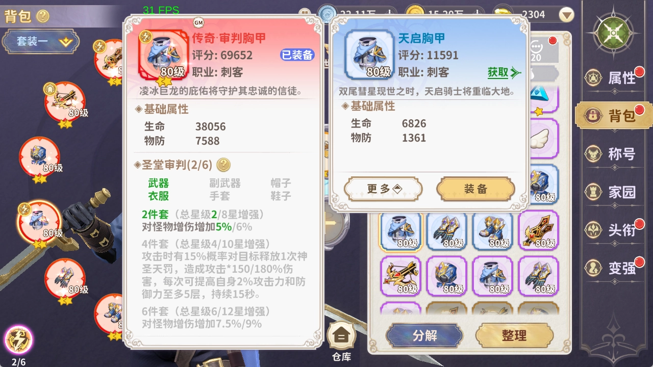 套装:高等级装备可以获得额外的套装效果。