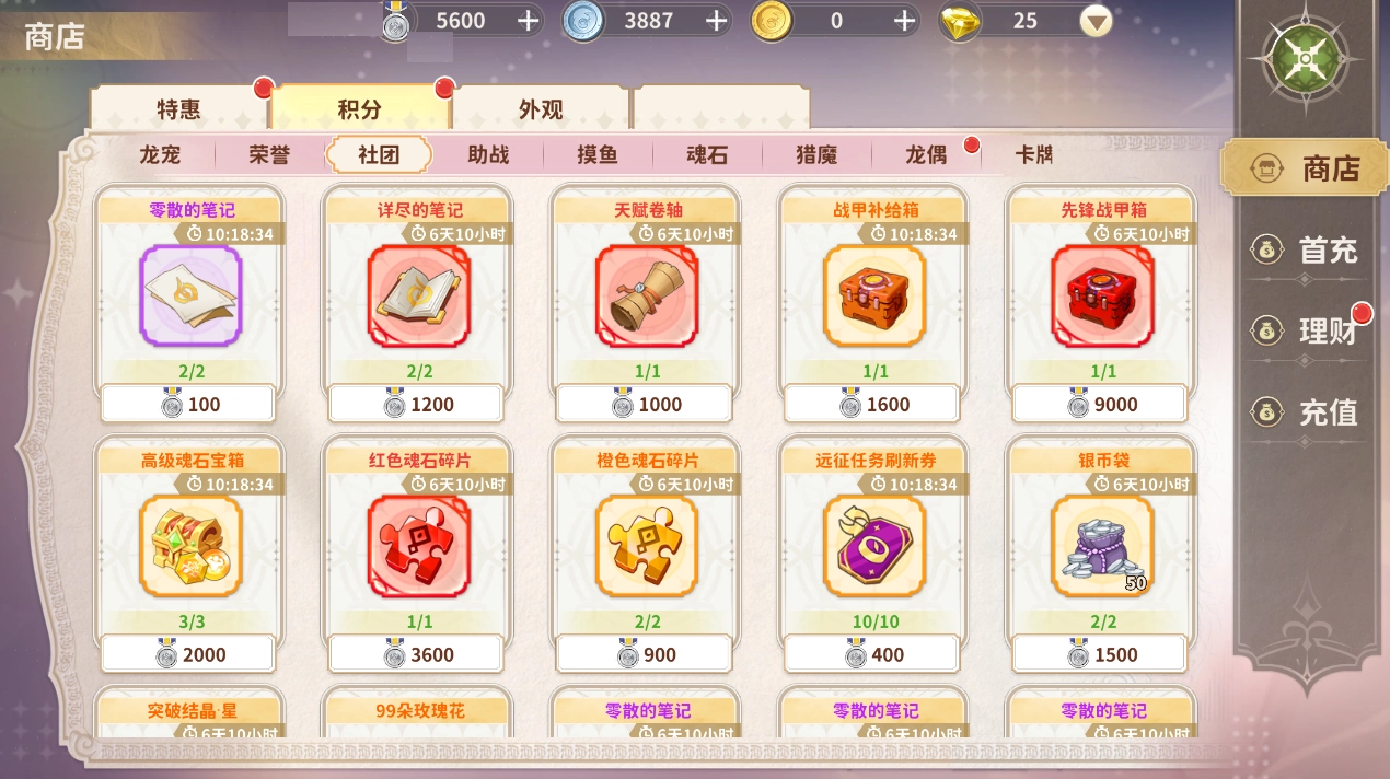 社团成员可以用社团贡献值在社团商店兑换各种物品。