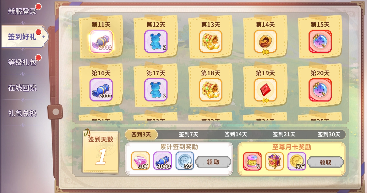 每天在指定页面登录并完成签到,就能领取签到福利。签到持续的时间越久,获得的福利就越丰厚哟。