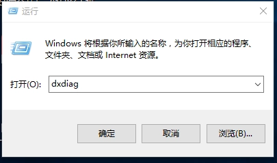 2. 输入Dxdiag命令,接着点击“确定”。