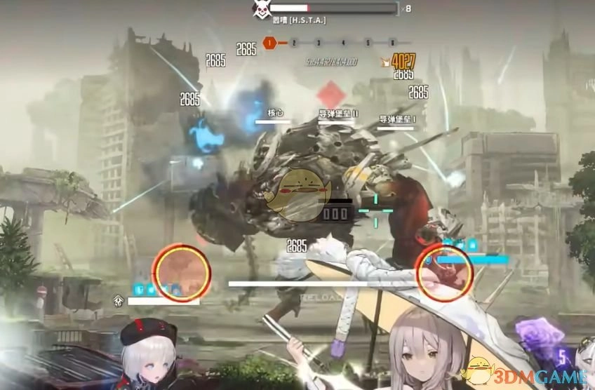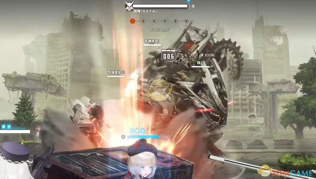 要是Nikke练度较低,扛不住嚣嘈的捶地加导弹连击,你可以手动操控妮姬,在发射飞弹时躲到掩体后面,让掩体帮你分担伤害。同时要控制好爆裂时间,保证队伍能打掉红圈。最后,千万不要打掉它的核心零件,打爆核心就等于团灭。总之,这是个比较简单的boss,没什么难点和操作要点。