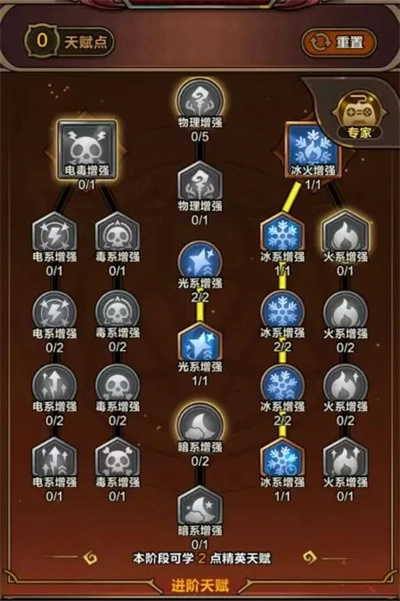 游戏前期,怪物难度较低,建议您直接点选攻击类天赋,快速提升清怪效率,轻松推图!