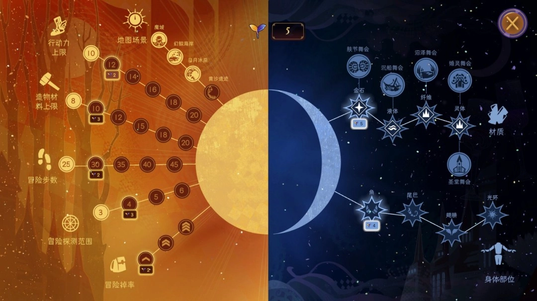 奇诡华丽的美术风格,以金色为主调的装饰主义UI设计,游戏内仿佛日日都是万圣节