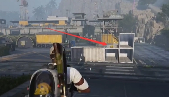 4、随后离开该建筑,在集装箱顶部能够找到第二个武器箱。