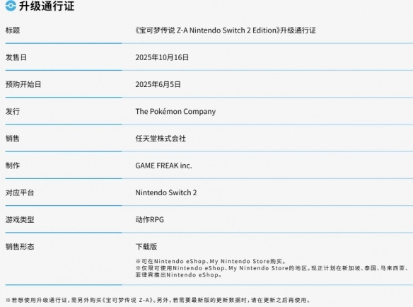 需要提醒的是,您得先持有《宝可梦传说:Z-A》的游戏本体,才有资格购买并使用该升级通行证。