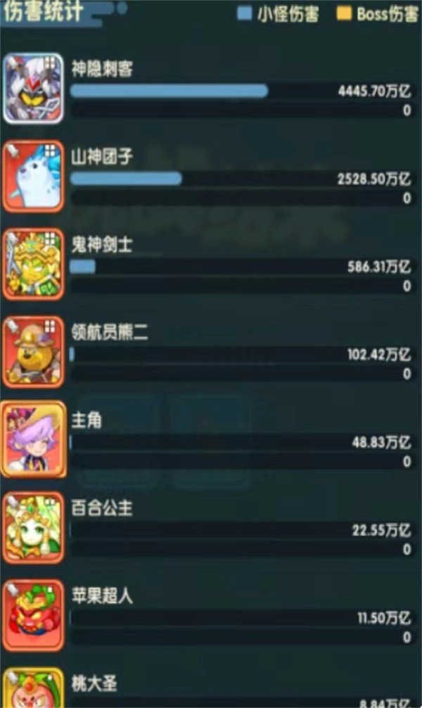 当深渊的所有格子都被填满时,总伤害数值达到了4445.7万亿。