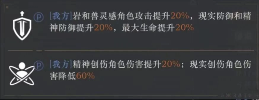 1. 选择兽岩角色能够获得场地基础属性加成,建议搭配精神创伤C使用。