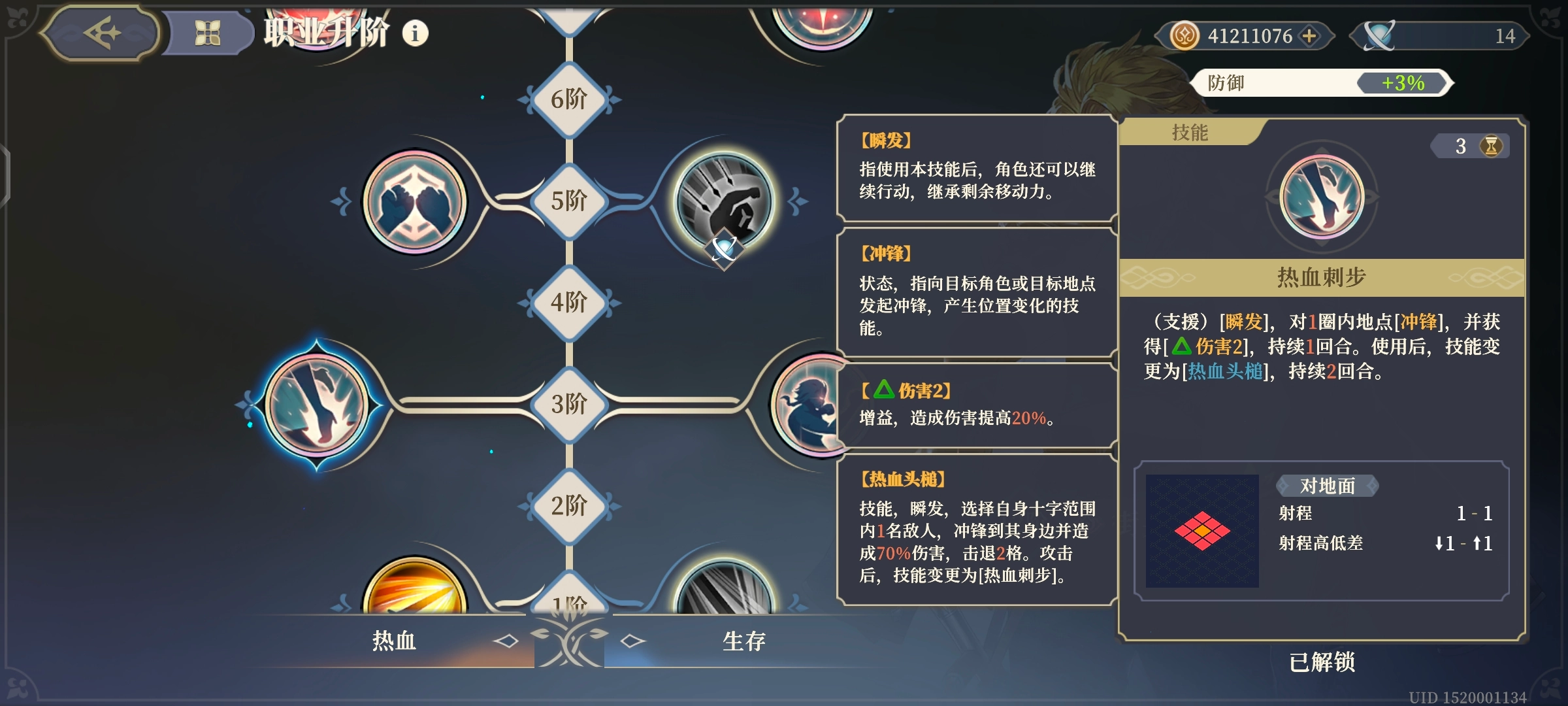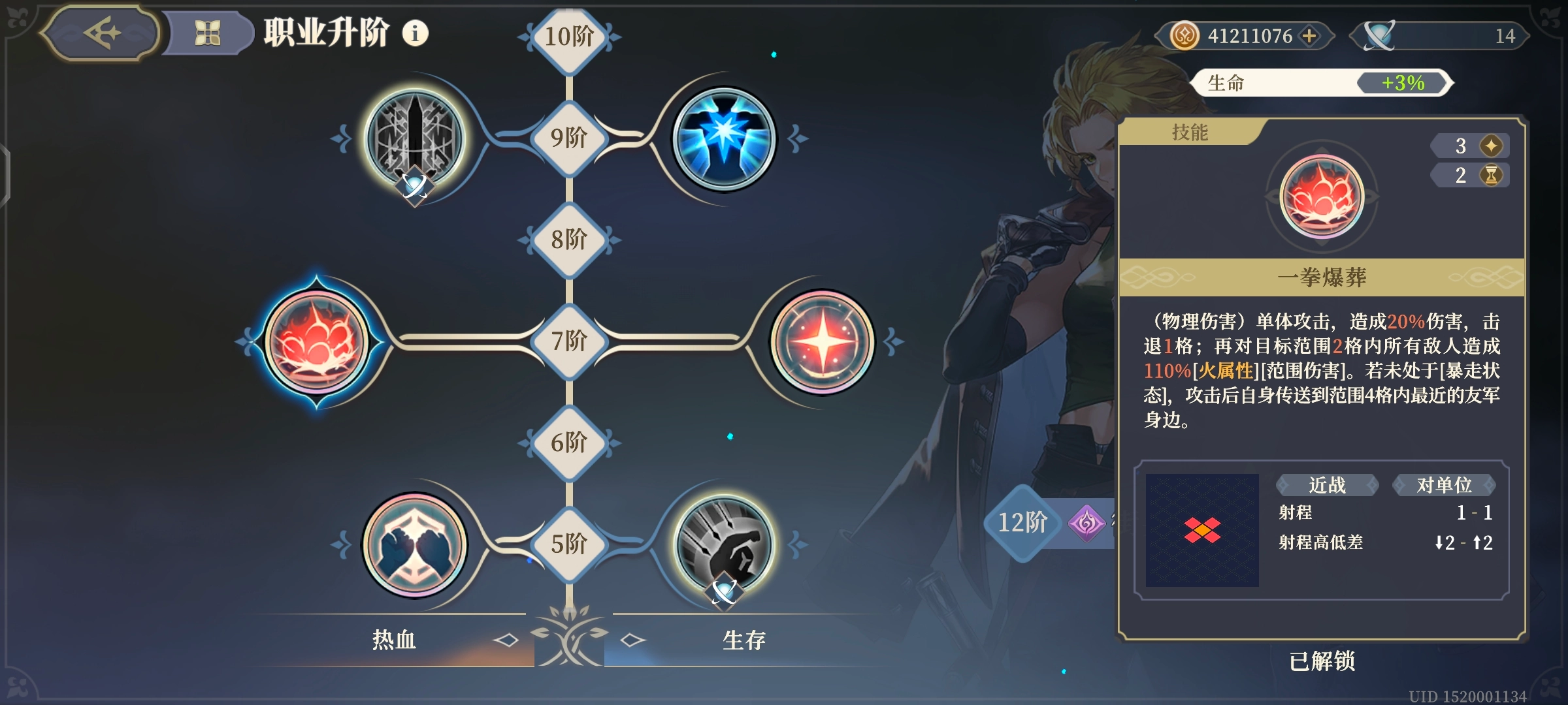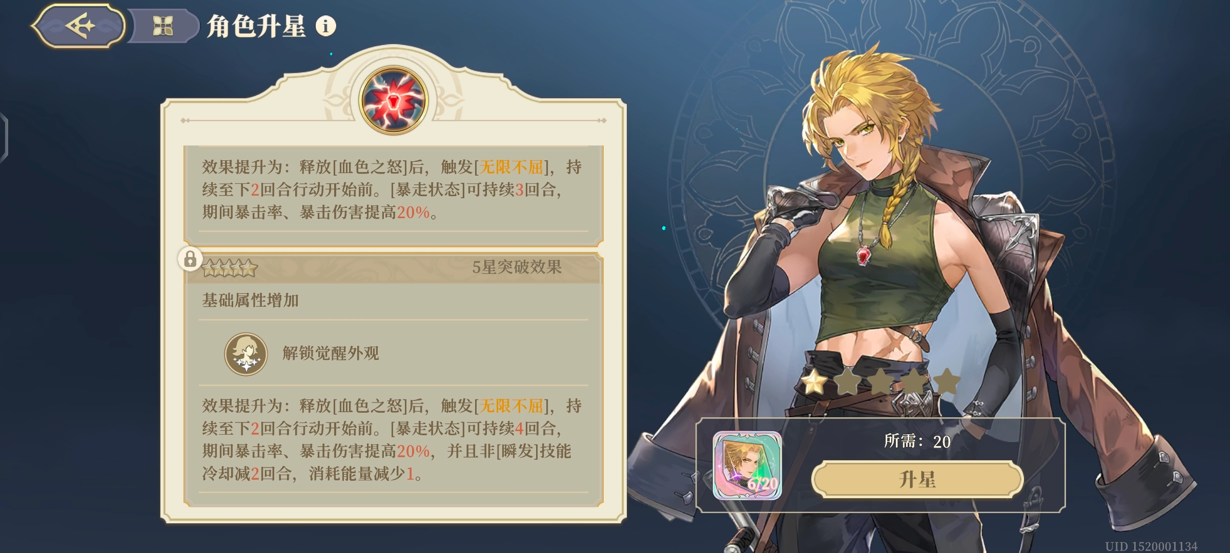 针对拥有护盾的角色,个性会额外增加30%的伤害,同时驱散6个护盾,所造成的范围伤害被认定为魔法伤害。战斗开启后,角色会获得一个额外技能——血色之怒。进入暴走状态时,该状态效果能重置所有技能,回复满能量并可再次行动。在此期间,角色的伤害与穿透伤害都会得到提升,不过受到的治疗效果会降低80%。此外,角色还具备无限不屈特性。在当前游戏环境中,速攻爆发型角色颇受欢迎。通过升星,可提升角色在暴走状态下的额外暴击率与暴击伤害,同时增加无限不屈的持续回合数。满星时,角色能减少非瞬发技能的冷却时间以及能量消耗,直接火力全开,化身为铃兰战神。