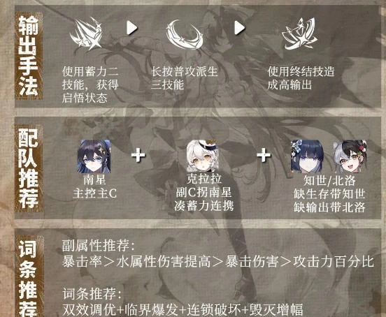 装备副属性的选择顺序建议为:暴击率、水属性伤害提升、暴击伤害、攻击力百分比。这样选择的逻辑很清晰——该角色的技能机制核心围绕水属性展开,水属性伤害提升能直接加成所有技能的输出效果;暴击率是稳定输出的保障,优先堆到50%以上可减少白字伤害的频繁出现;后续补充暴击伤害能进一步放大暴击时的伤害上限;最后用攻击力百分比夯实基础伤害,这种搭配能让每一点属性都精准作用于提升输出,避免属性浪费。装备特效词条优先考虑双效调优和临界爆发,其中双效调优可增强技能衔接的流畅度。