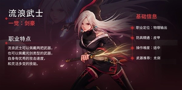 流浪武士凭借独特的内劲之力,将战斗中目睹的各类武学精华融会贯通,从而开创出别具一格的双持剑术。“似花朵般娇艳,如毒刺般狠辣”,这便是世人对她的描述。