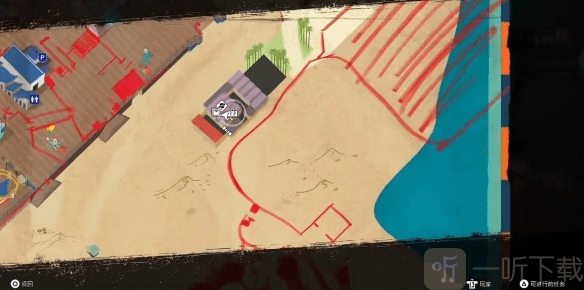 6. 转身后离开房屋,左转前往沙滩。