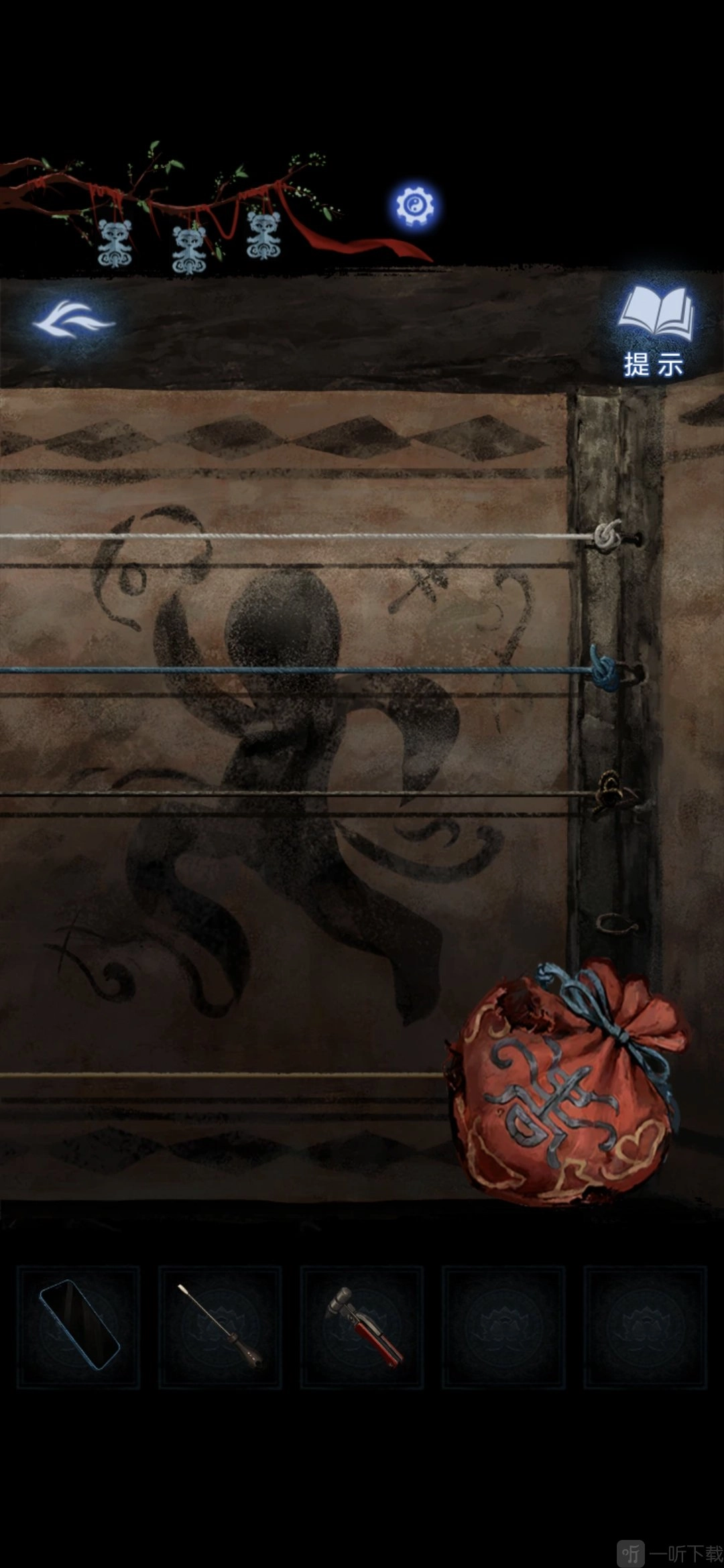 重新回到石门里面,把香囊系在古琴之上,依照“黑蓝红红白黄黄蓝”的次序进行弹奏,进而获取泥塑元宝和缶。