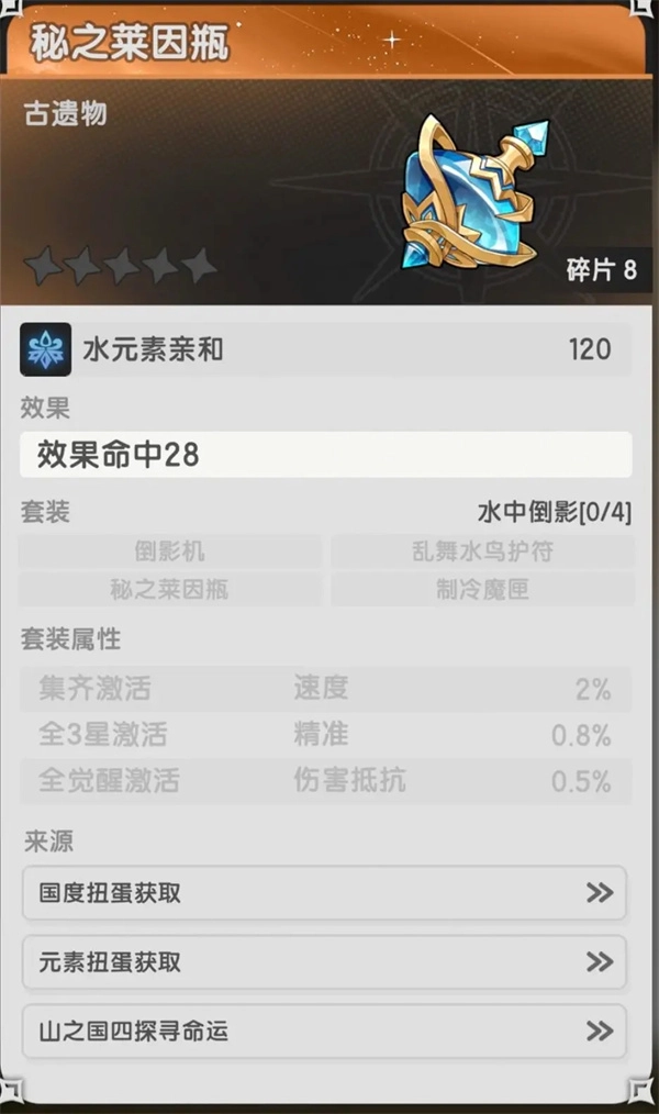 山四:蚌壳居(存在水庇护,与生命相关);秘之莱因瓶(水亲和,效果命中★)