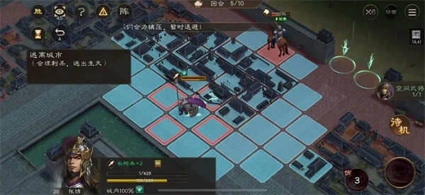 到了第五回合,稍微往下移动一些,注意别让骑兵碰到他。接着等待三个回合,等技能的冷却时间结束。