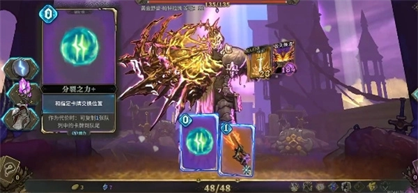 当日炎之剑的代价为源力时,不会消耗源力,且会重置源力冷却。此外,分裂之力+能够让玩家从复制队列中自行挑选一张卡牌,并将其放置到队尾。