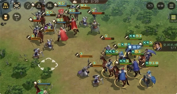 在第三回合,关羽能够被操控,此时可让他与华雄进行单挑。我方角色多数普通攻击为四向攻击,不过技能皆具备八向攻击,玩家可以利用这一特性“白嫖”。整体而言,这是较为简单的一关,关键在于开局时将曹老板聚拢并给他加上增益效果。